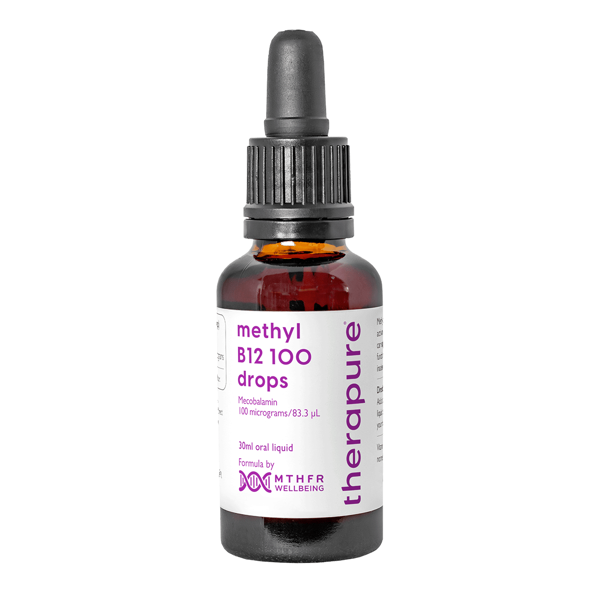 - Liquid Vitamin B12 drops containing 100µg of mecobalamin per serve