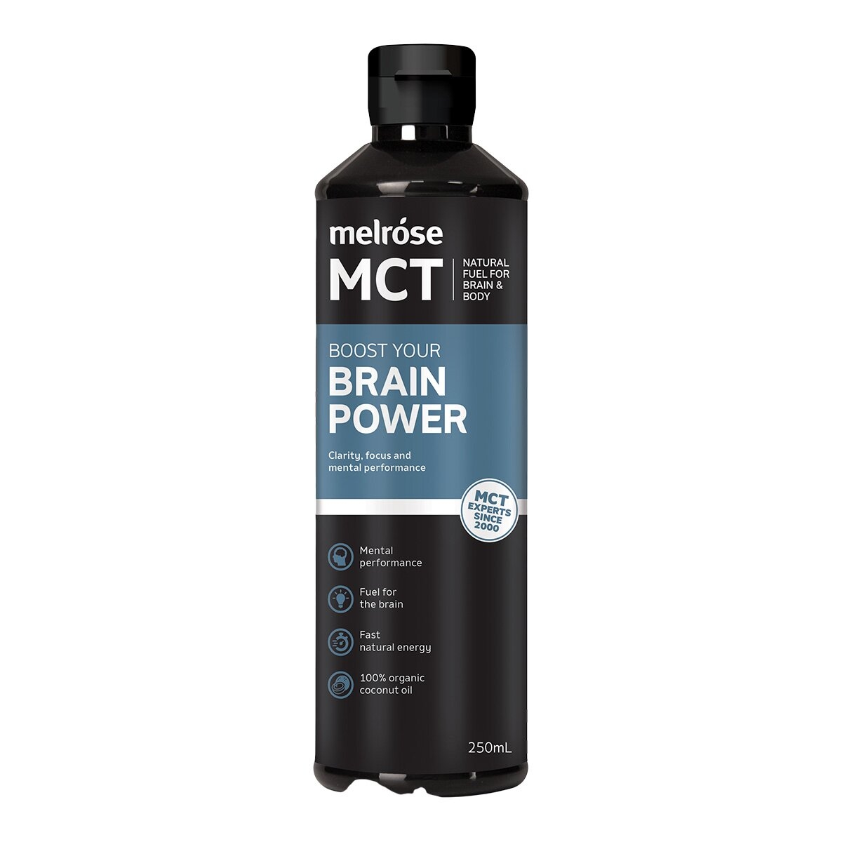 - 100% organic coconut-derived medium-chain triglycerides with caproic acid (C6), caprylic acid (C8) and capric acid (C10)