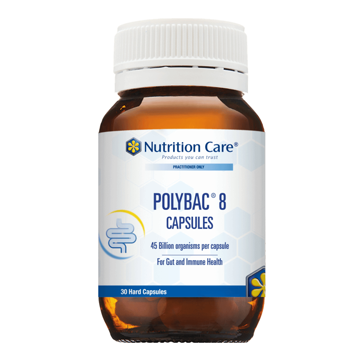 - A combination of 8 strain-specific probiotics providing 45 billion organisms per capsule